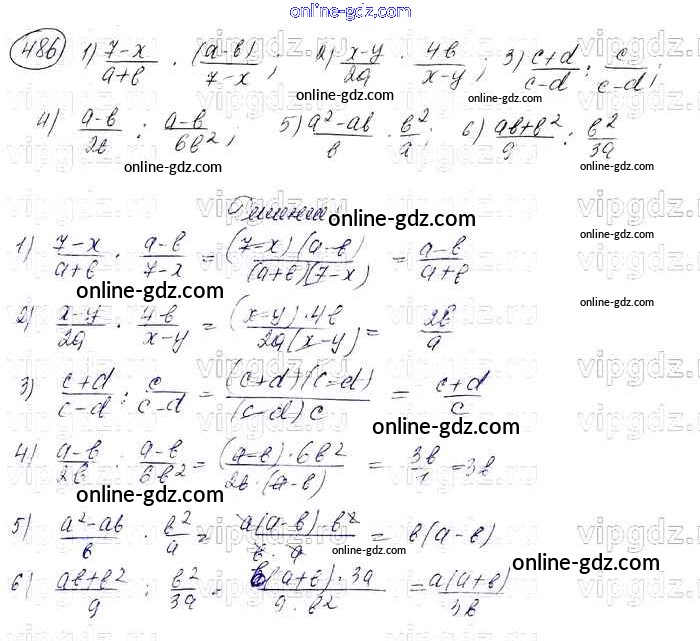 Готовые домашние задания по Алгебре за 7 класс Учебник Колягин, Ткачёва УМК 2012 - Упражнения 486