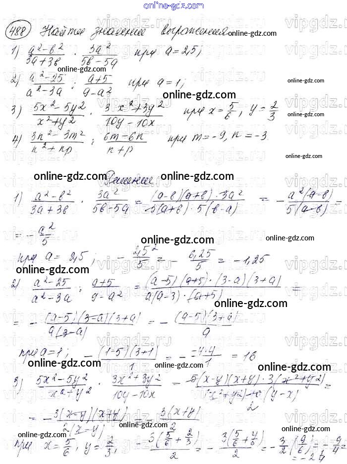 Готовые домашние задания по Алгебре за 7 класс Учебник Колягин, Ткачёва УМК 2012 - Упражнения 488