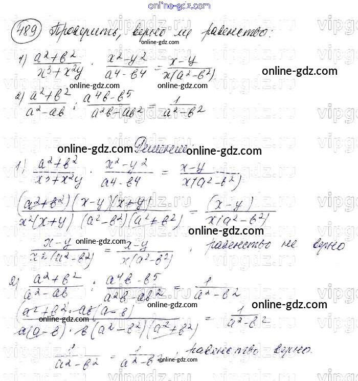 Готовые домашние задания по Алгебре за 7 класс Учебник Колягин, Ткачёва УМК 2012 - Упражнения 489