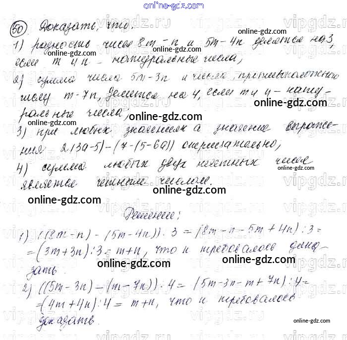 Готовые домашние задания по Алгебре за 7 класс Учебник Колягин, Ткачёва УМК 2012 - Упражнения 50