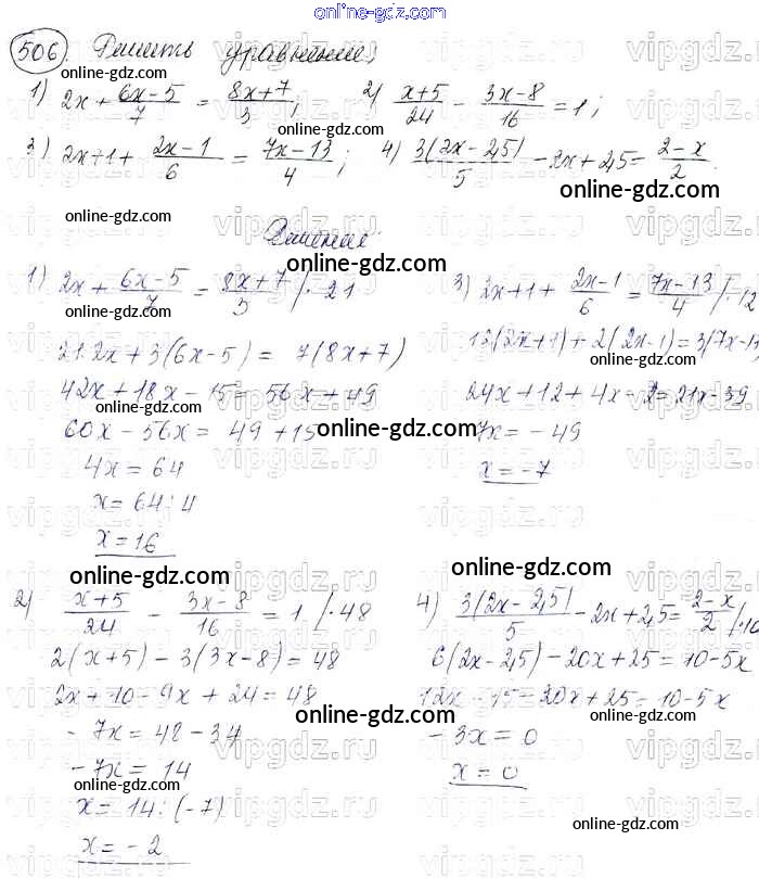 Готовые домашние задания по Алгебре за 7 класс Учебник Колягин, Ткачёва УМК 2012 - Упражнения 506