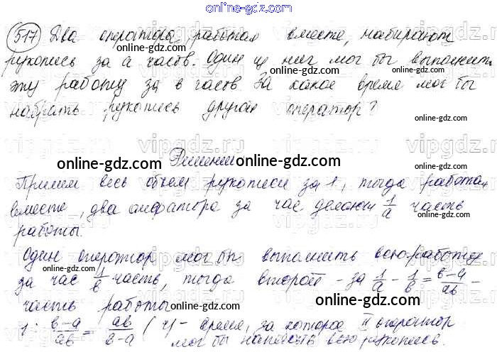 Готовые домашние задания по Алгебре за 7 класс Учебник Колягин, Ткачёва УМК 2012 - Упражнения 517
