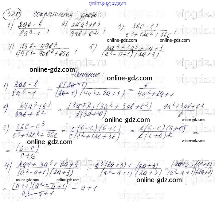 Готовые домашние задания по Алгебре за 7 класс Учебник Колягин, Ткачёва УМК 2012 - Упражнения 520