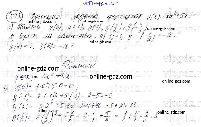 Готовые домашние задания по Алгебре за 7 класс Учебник Колягин, Ткачёва УМК 2012 - Упражнения 542