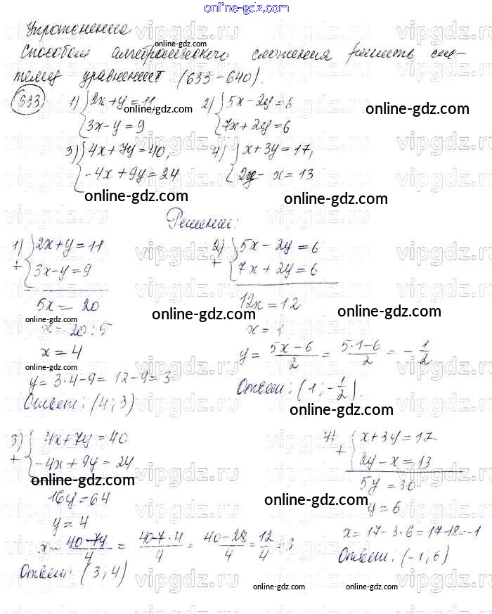 Готовые домашние задания по Алгебре за 7 класс Учебник Колягин, Ткачёва УМК 2012 - Упражнения 633