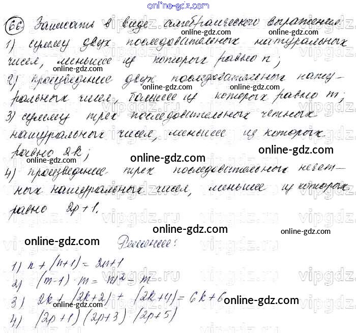 Готовые домашние задания по Алгебре за 7 класс Учебник Колягин, Ткачёва УМК 2012 - Упражнения 66