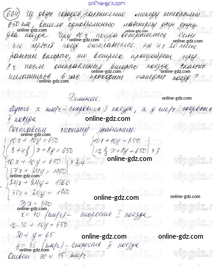 Готовые домашние задания по Алгебре за 7 класс Учебник Колягин, Ткачёва УМК 2012 - Упражнения 664