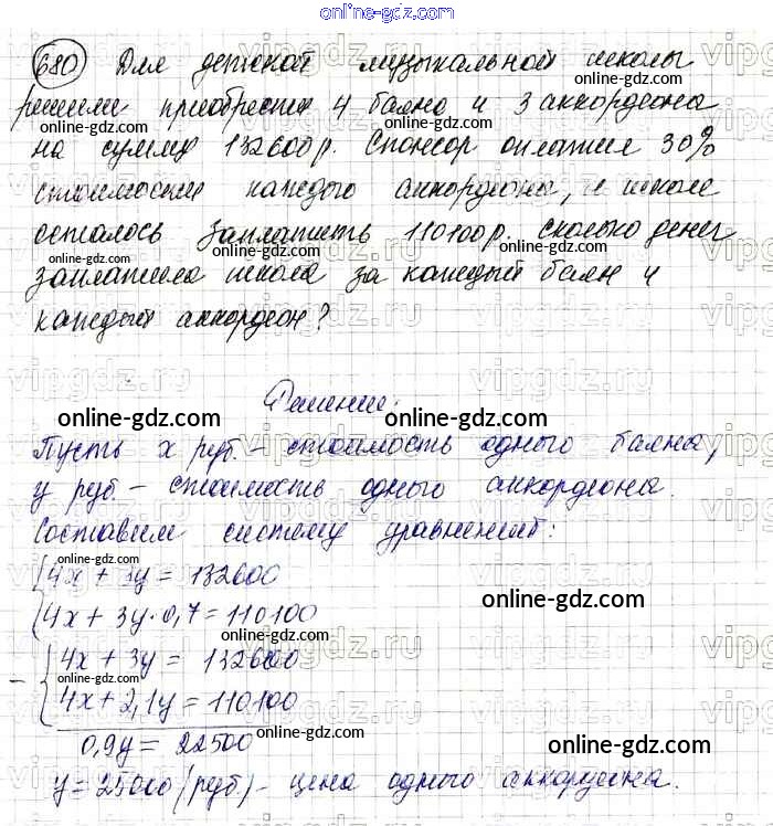 Готовые домашние задания по Алгебре за 7 класс Учебник Колягин, Ткачёва УМК 2012 - Упражнения 680