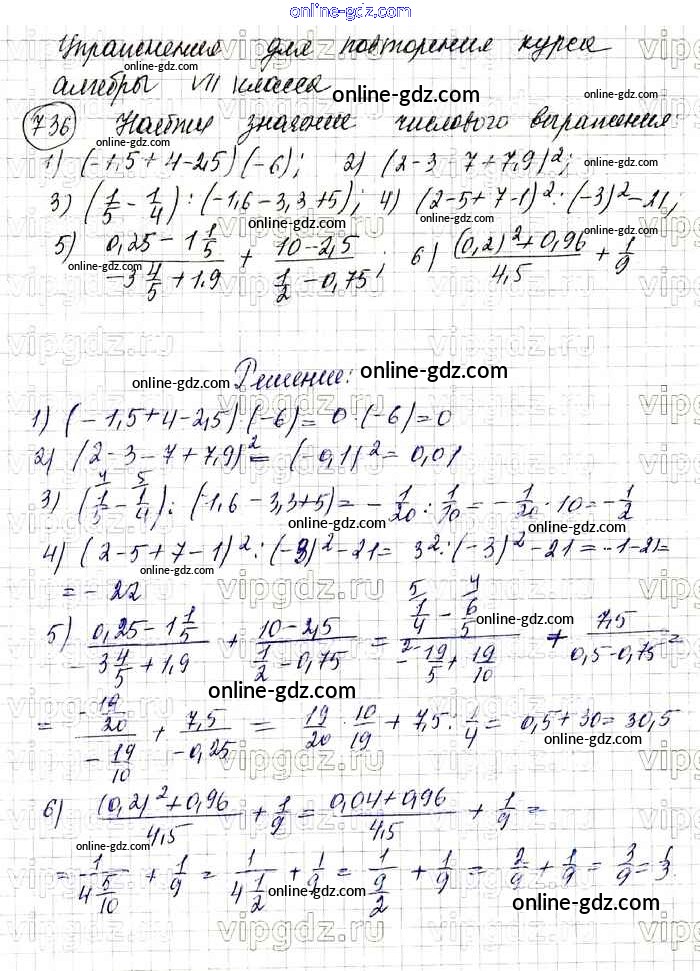 Готовые домашние задания по Алгебре за 7 класс Учебник Колягин, Ткачёва УМК 2012 - Упражнения 736