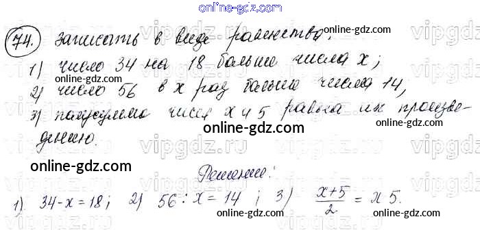 Готовые домашние задания по Алгебре за 7 класс Учебник Колягин, Ткачёва УМК 2012 - Упражнения 74