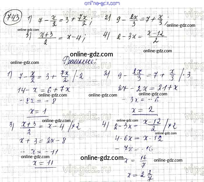 Готовые домашние задания по Алгебре за 7 класс Учебник Колягин, Ткачёва УМК 2012 - Упражнения 743