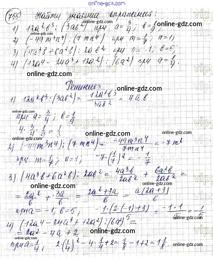 Готовые домашние задания по Алгебре за 7 класс Учебник Колягин, Ткачёва УМК 2012 - Упражнения 755