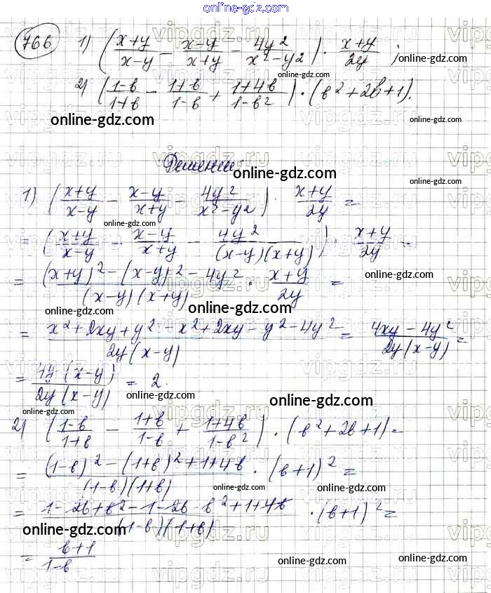 Готовые домашние задания по Алгебре за 7 класс Учебник Колягин, Ткачёва УМК 2012 - Упражнения 766