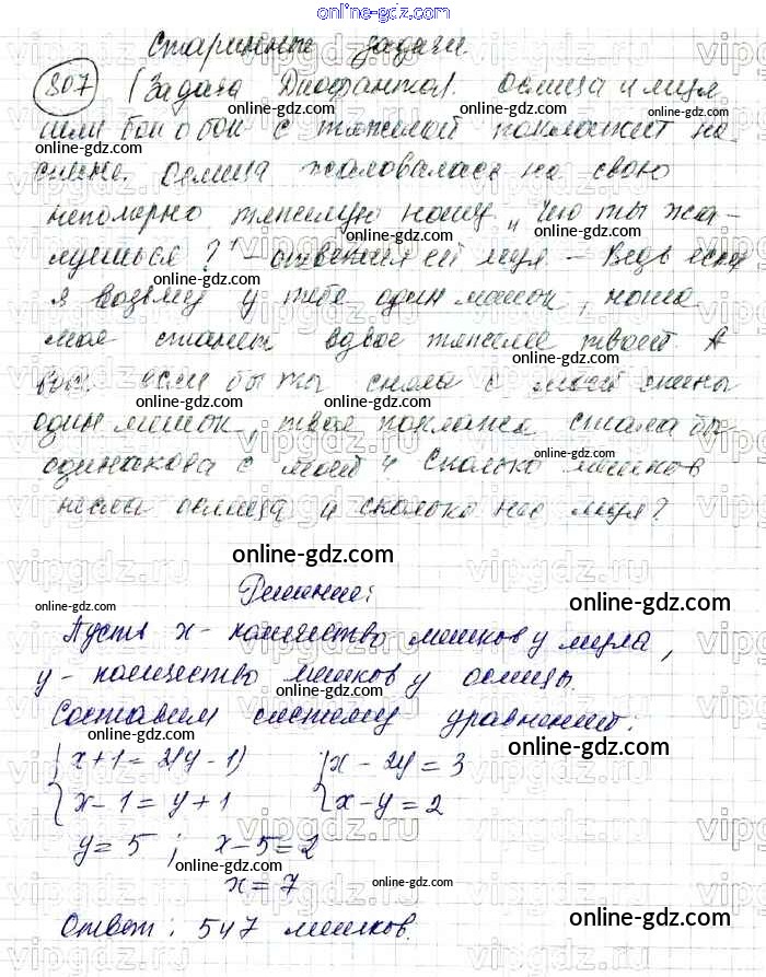 Готовые домашние задания по Алгебре за 7 класс Учебник Колягин, Ткачёва УМК 2012 - Упражнения 807