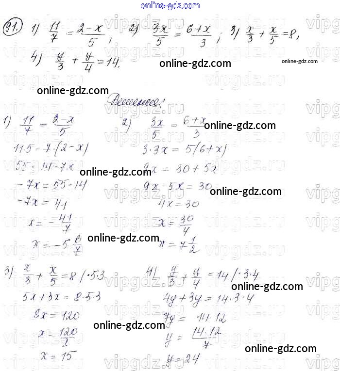 Готовые домашние задания по Алгебре за 7 класс Учебник Колягин, Ткачёва УМК 2012 - Упражнения 91