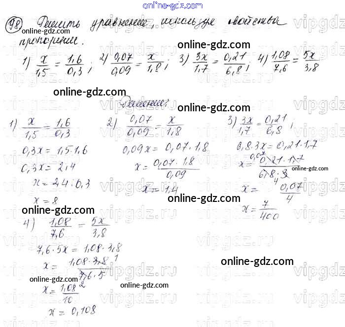 Готовые домашние задания по Алгебре за 7 класс Учебник Колягин, Ткачёва УМК 2012 - Упражнения 98