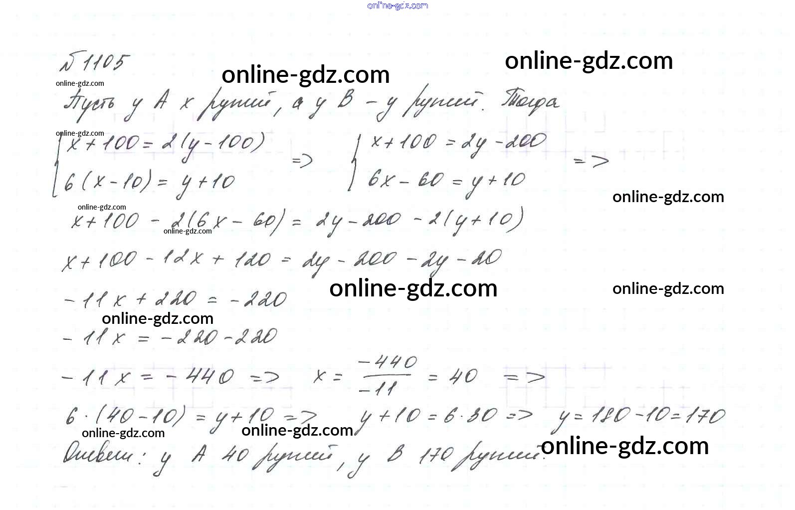 Готовые домашние задания по Алгебре за 7 класс Учебник Макарычев, Миндюк 2015 - Упражнения 1105