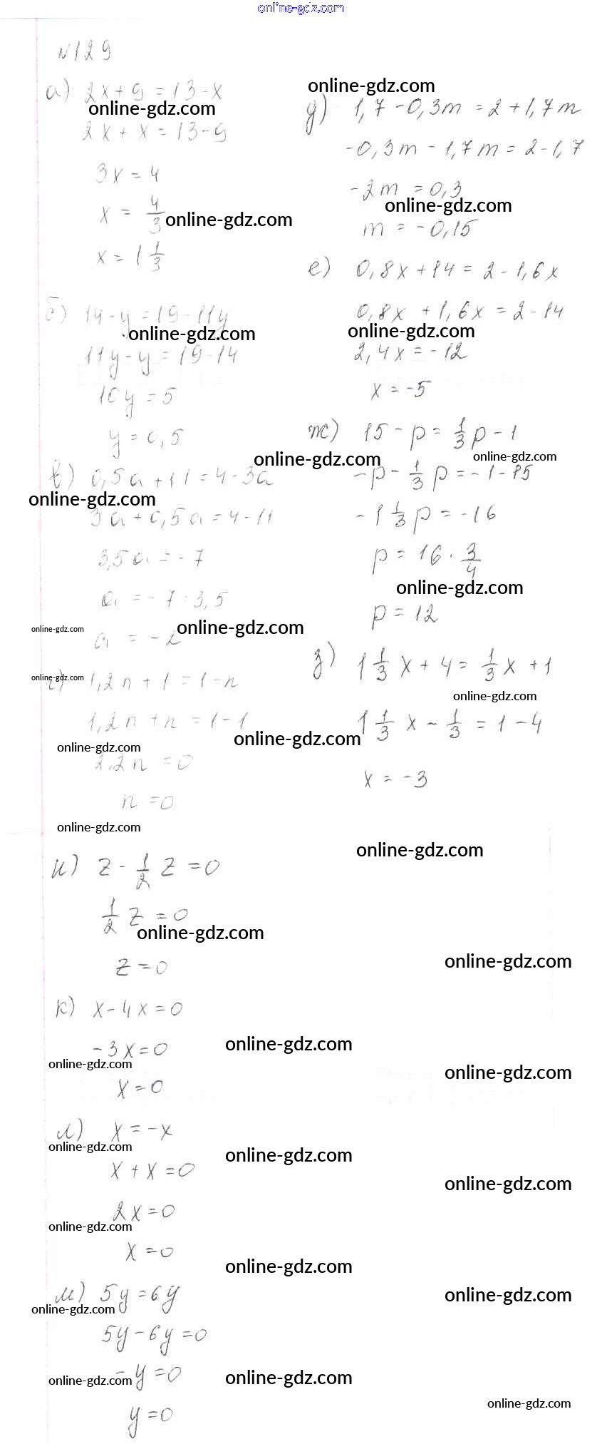 Готовые домашние задания по Алгебре за 7 класс Учебник Макарычев, Миндюк 2015 - Упражнения 129