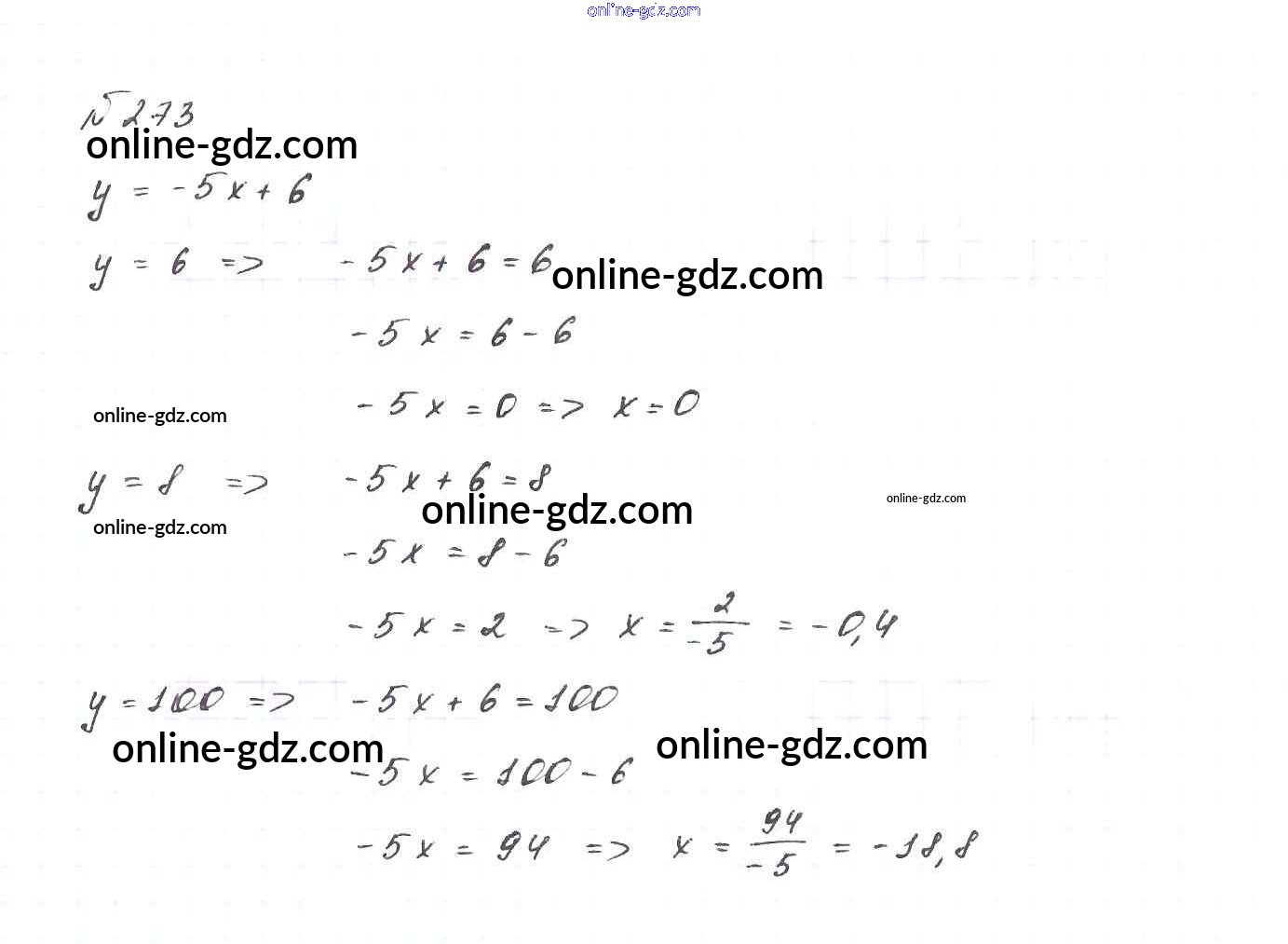 Готовые домашние задания по Алгебре за 7 класс Учебник Макарычев, Миндюк 2015 - Упражнения 273