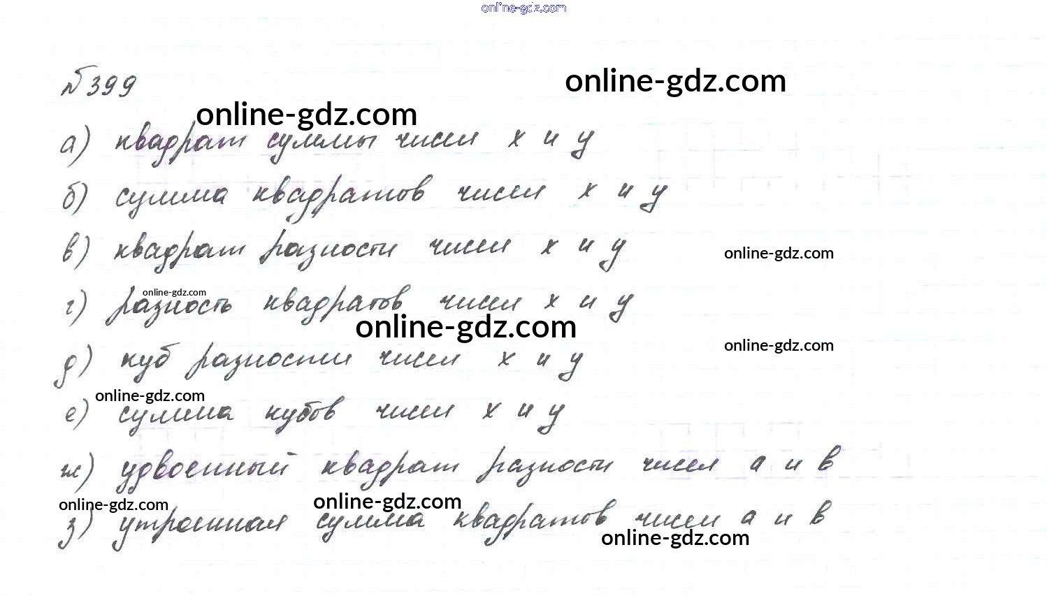 Готовые домашние задания по Алгебре за 7 класс Учебник Макарычев, Миндюк 2015 - Упражнения 399