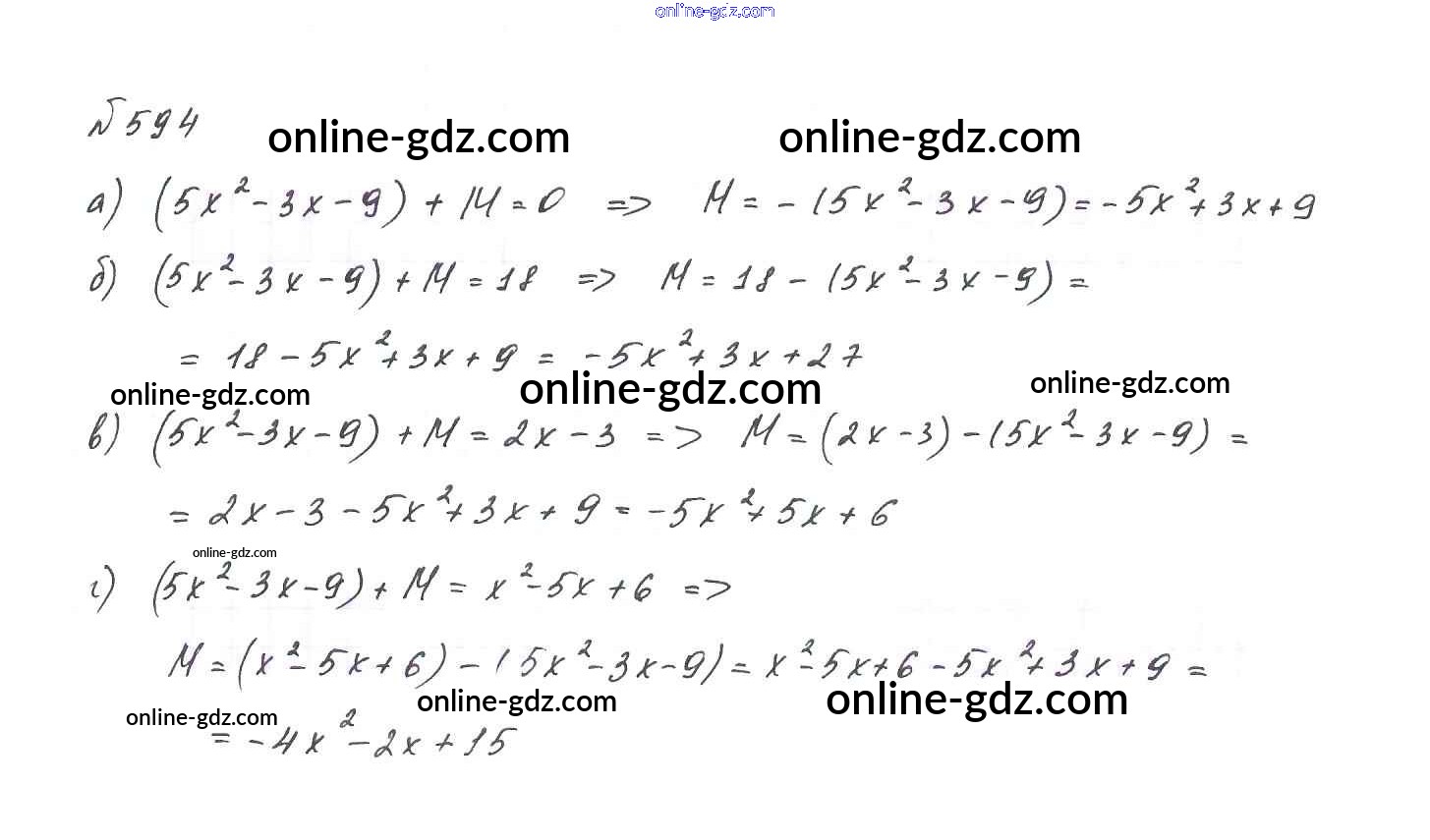 Готовые домашние задания по Алгебре за 7 класс Учебник Макарычев, Миндюк 2015 - Упражнения 594
