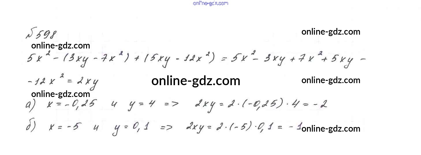 Готовые домашние задания по Алгебре за 7 класс Учебник Макарычев, Миндюк 2015 - Упражнения 598