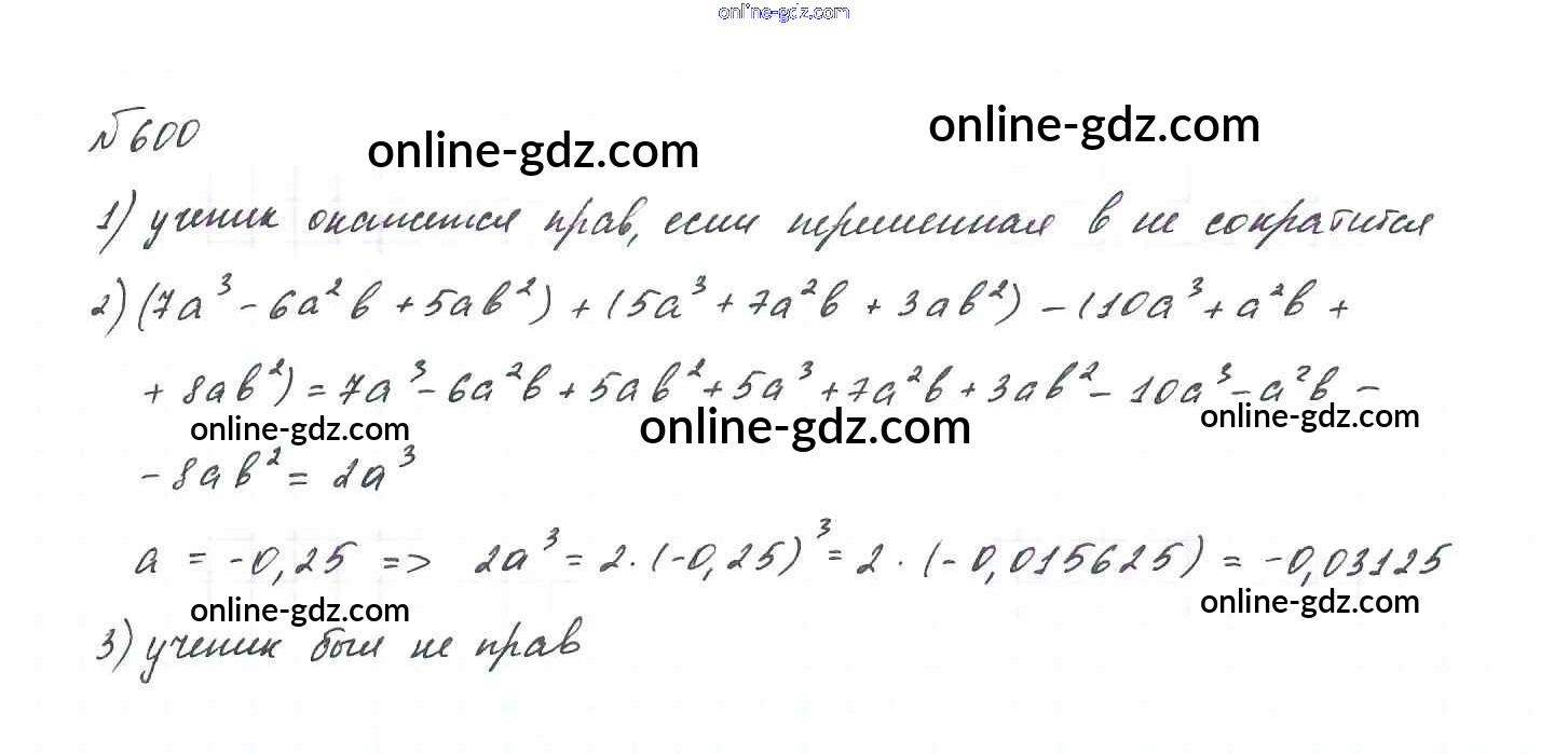 Готовые домашние задания по Алгебре за 7 класс Учебник Макарычев, Миндюк 2015 - Упражнения 600