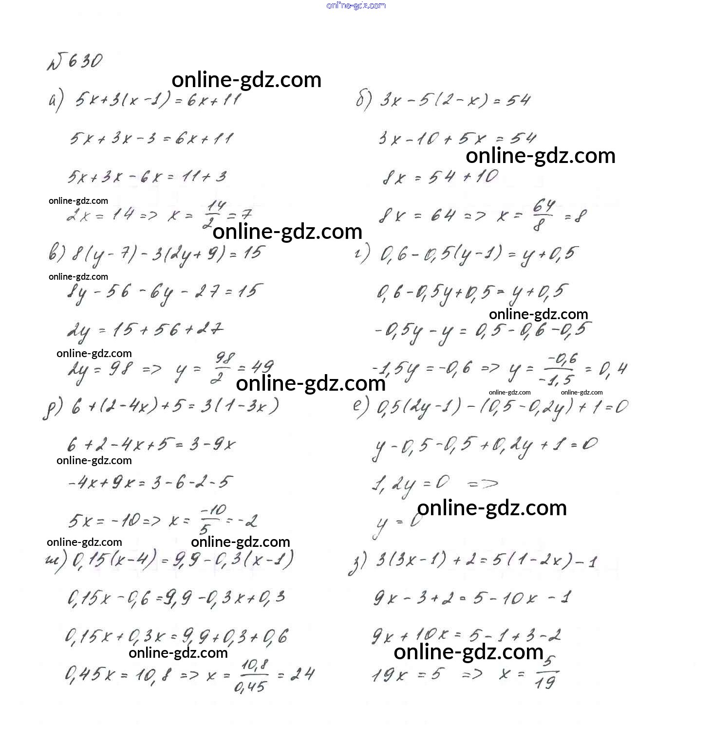 Готовые домашние задания по Алгебре за 7 класс Учебник Макарычев, Миндюк 2015 - Упражнения 630