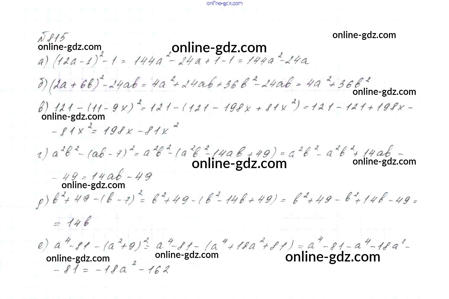 Готовые домашние задания по Алгебре за 7 класс Учебник Макарычев, Миндюк 2015 - Упражнения 815