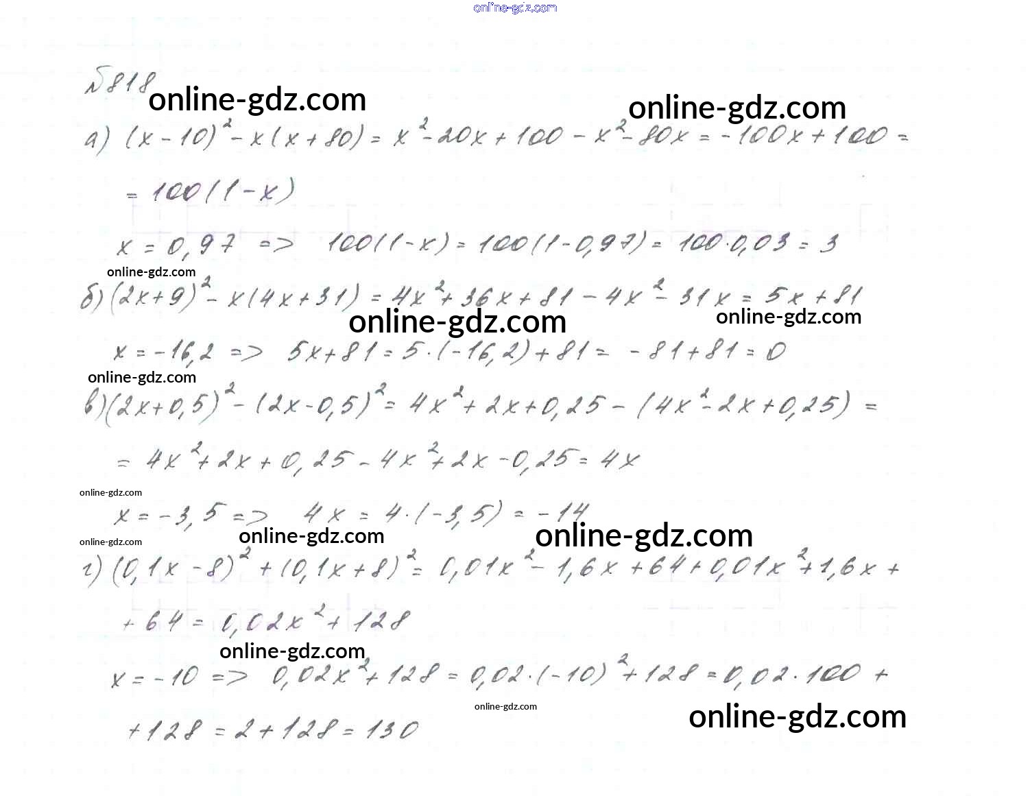 Готовые домашние задания по Алгебре за 7 класс Учебник Макарычев, Миндюк 2015 - Упражнения 818