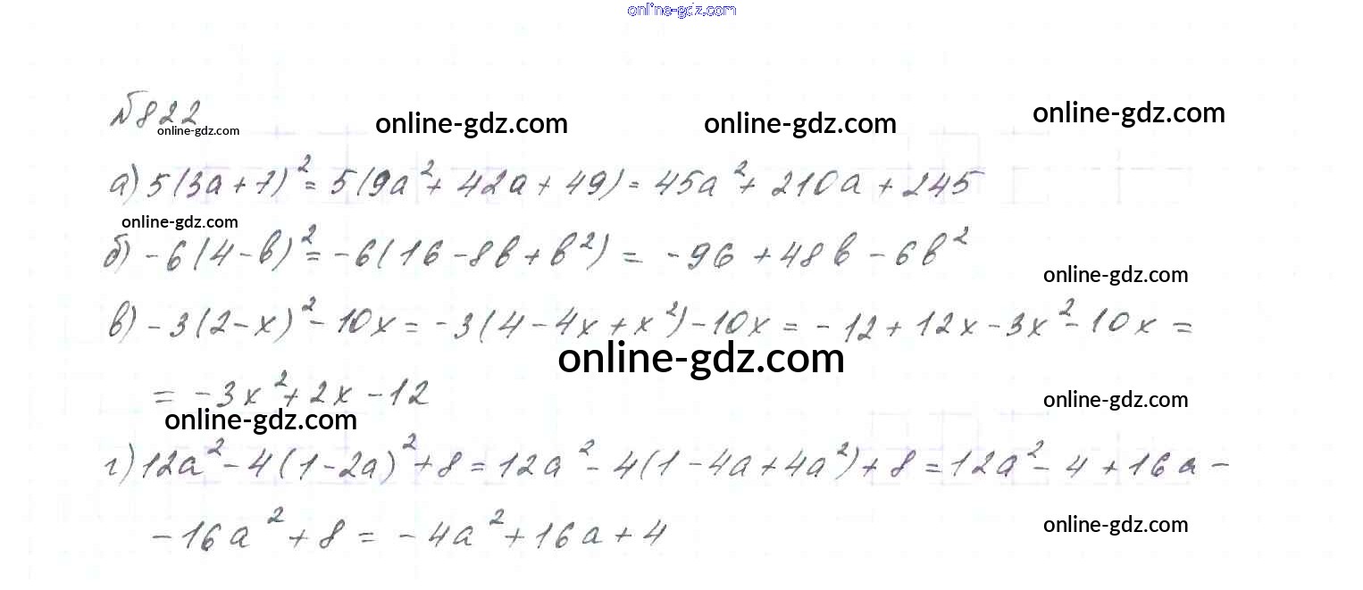 Готовые домашние задания по Алгебре за 7 класс Учебник Макарычев, Миндюк 2015 - Упражнения 822
