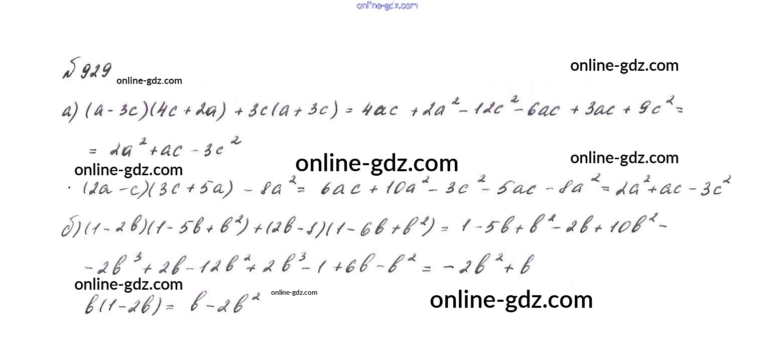 Готовые домашние задания по Алгебре за 7 класс Учебник Макарычев, Миндюк 2015 - Упражнения 929
