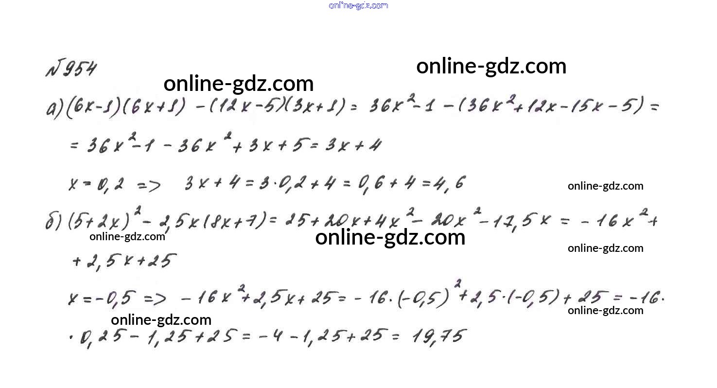 Готовые домашние задания по Алгебре за 7 класс Учебник Макарычев, Миндюк 2015 - Упражнения 954