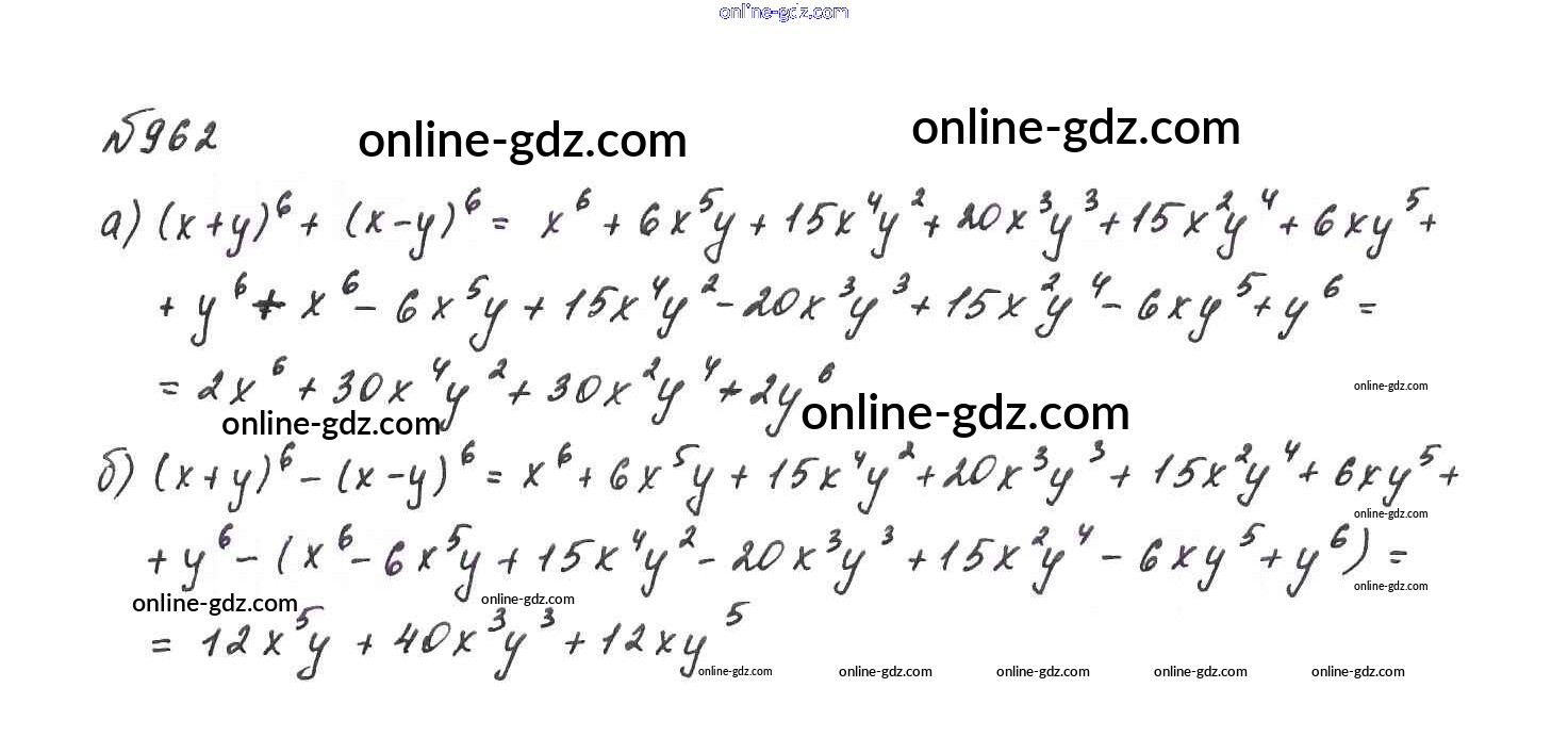 Готовые домашние задания по Алгебре за 7 класс Учебник Макарычев, Миндюк 2015 - Упражнения 962