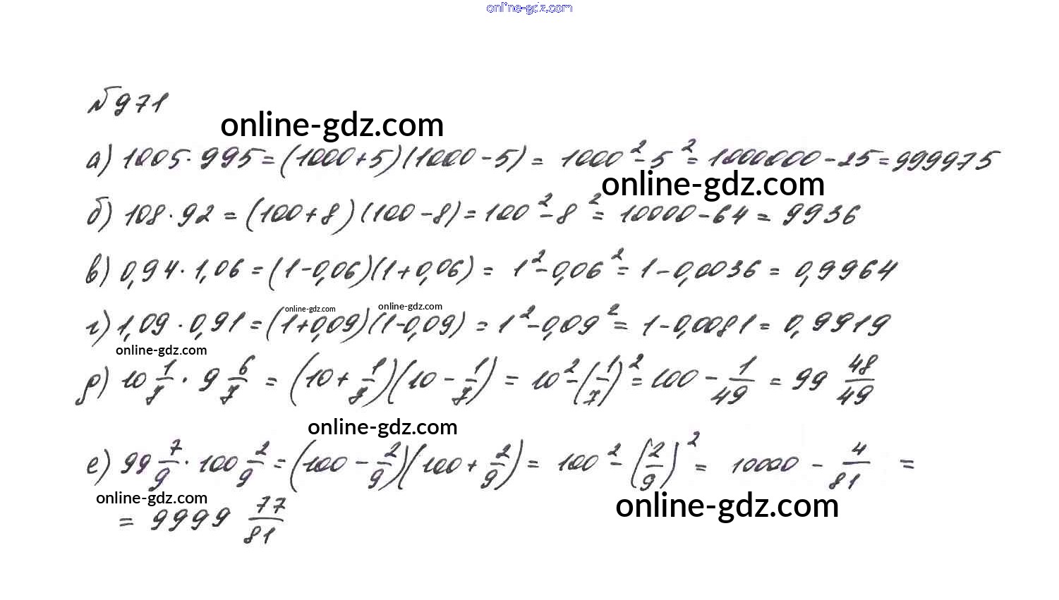 Готовые домашние задания по Алгебре за 7 класс Учебник Макарычев, Миндюк 2015 - Упражнения 971