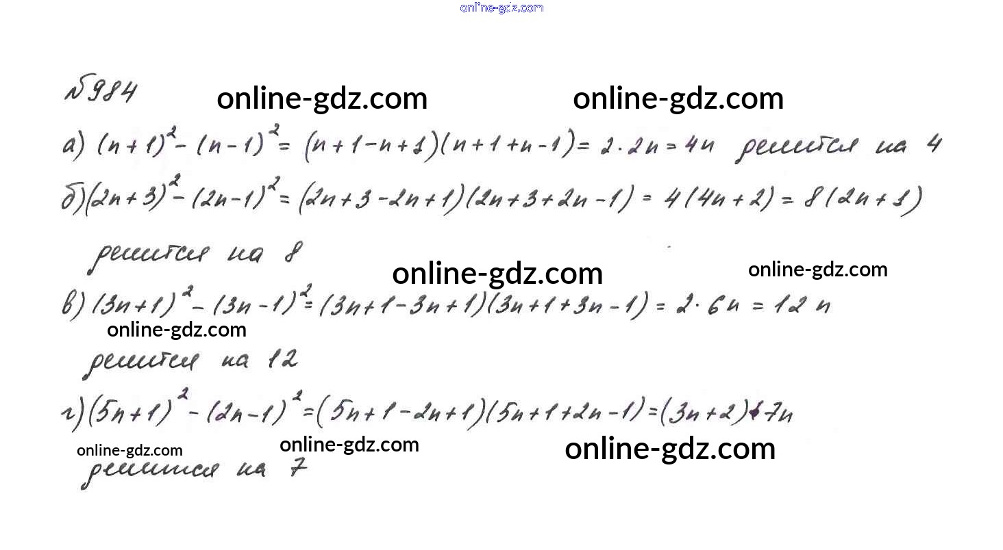 Готовые домашние задания по Алгебре за 7 класс Учебник Макарычев, Миндюк 2015 - Упражнения 984