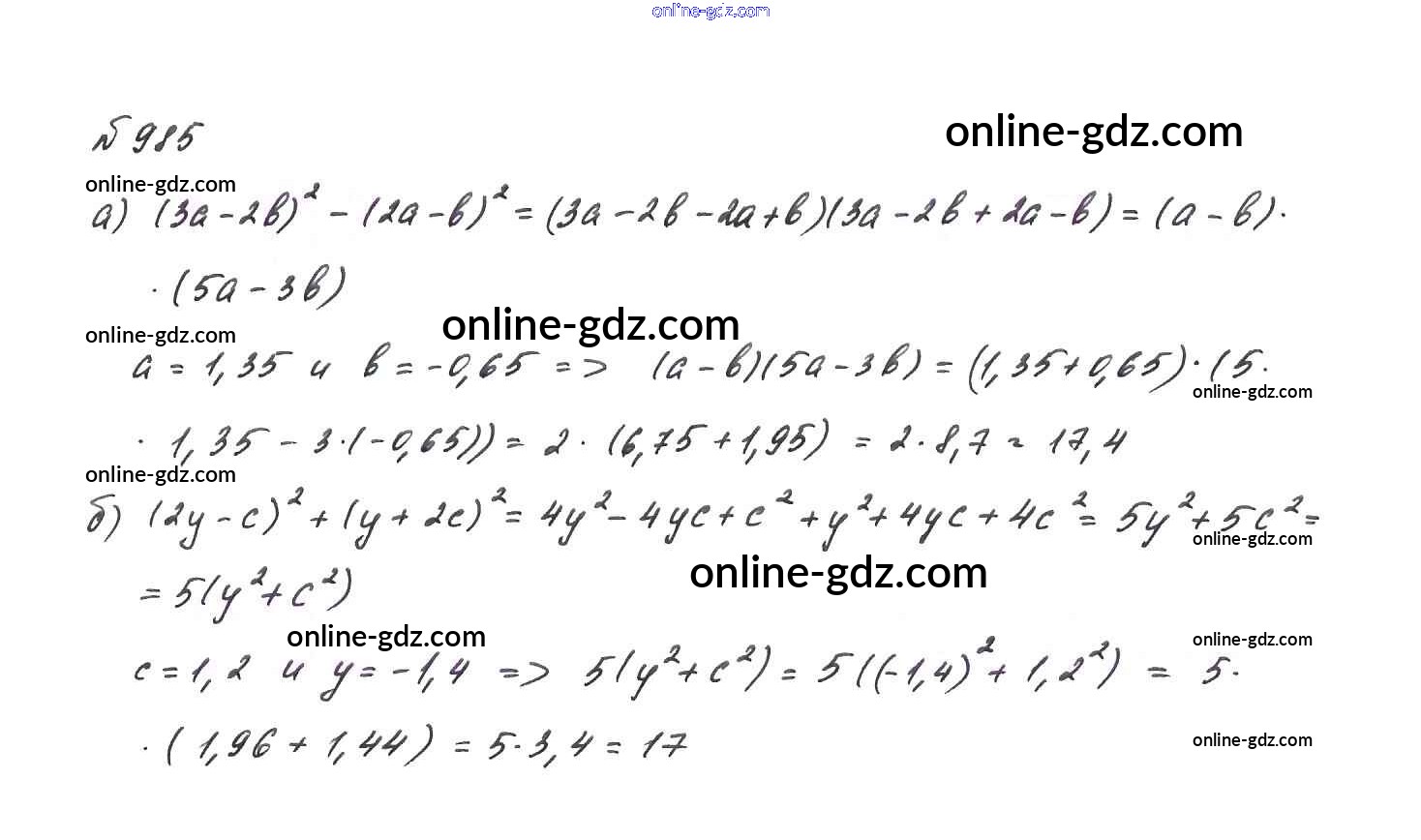 Готовые домашние задания по Алгебре за 7 класс Учебник Макарычев, Миндюк 2015 - Упражнения 985