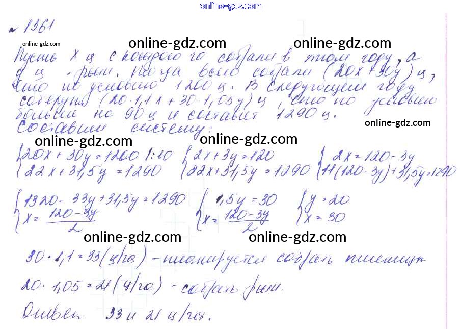 Готовые домашние задания по Алгебре за 7 класс Учебник Макарычев, Миндюк УМК Углубленный уровень 2013 - Упражнения 1361