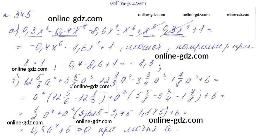 Готовые домашние задания по Алгебре за 7 класс Учебник Макарычев, Миндюк УМК Углубленный уровень 2013 - Упражнения 345