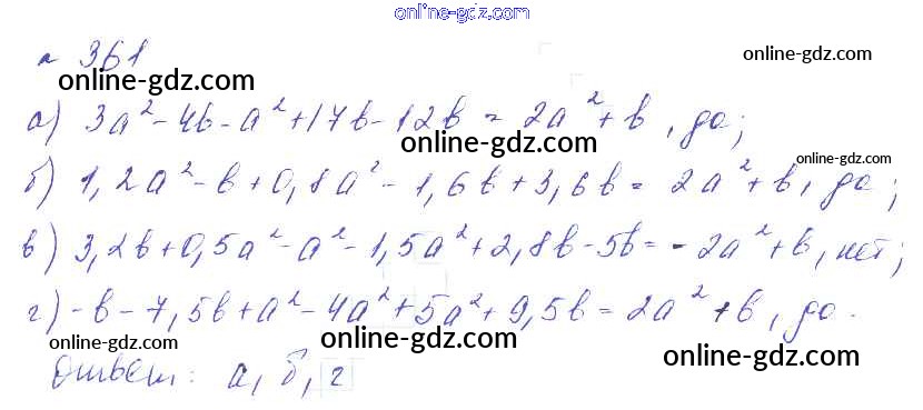 Готовые домашние задания по Алгебре за 7 класс Учебник Макарычев, Миндюк УМК Углубленный уровень 2013 - Упражнения 361