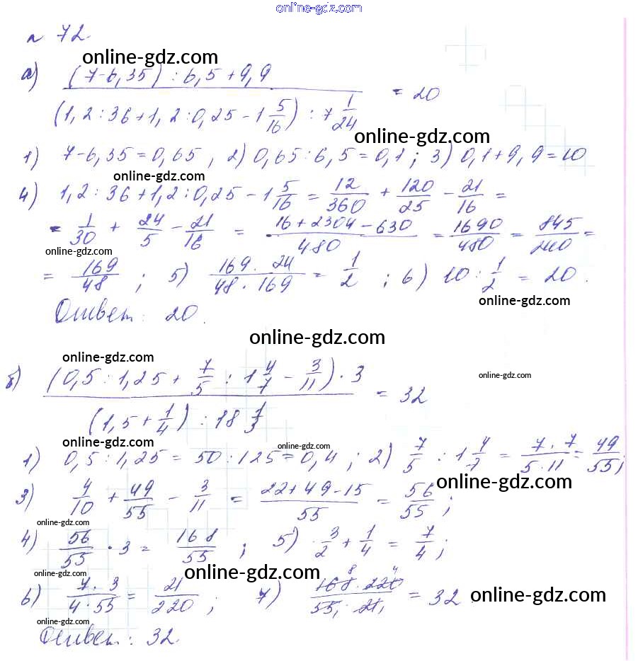Готовые домашние задания по Алгебре за 7 класс Учебник Макарычев, Миндюк УМК Углубленный уровень 2013 - Упражнения 72