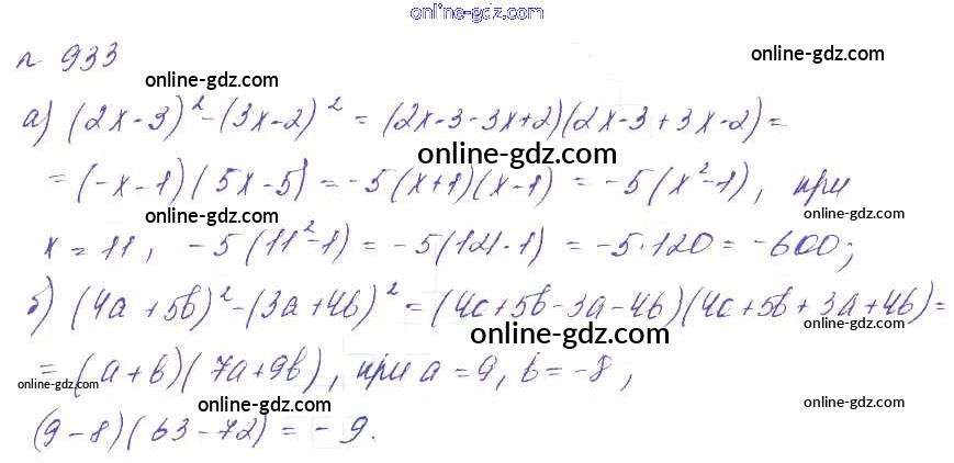 Готовые домашние задания по Алгебре за 7 класс Учебник Макарычев, Миндюк УМК Углубленный уровень 2013 - Упражнения 933