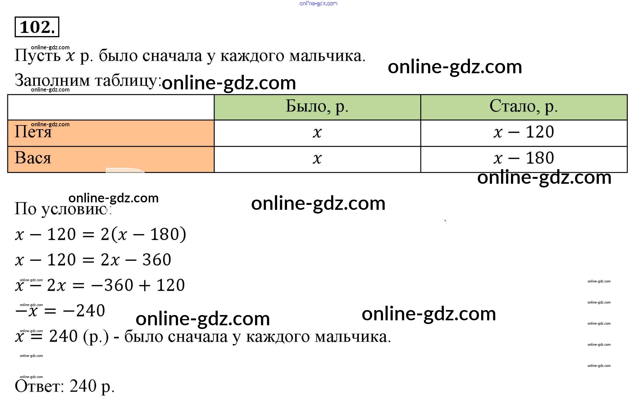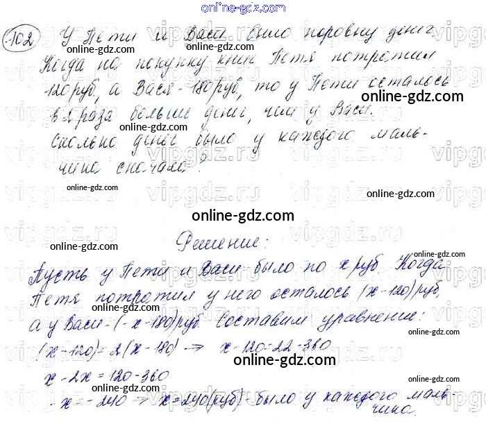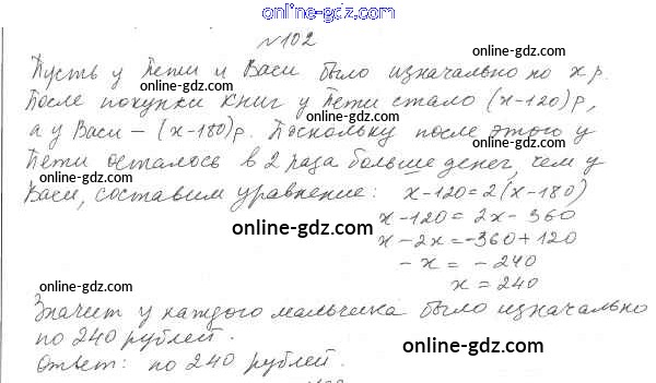 Готовые домашние задания по Алгебре за 7 класс Учебник Мерзляк, Полонский Алгоритм успеха Базовый уровень 2016 - Упражнения 102