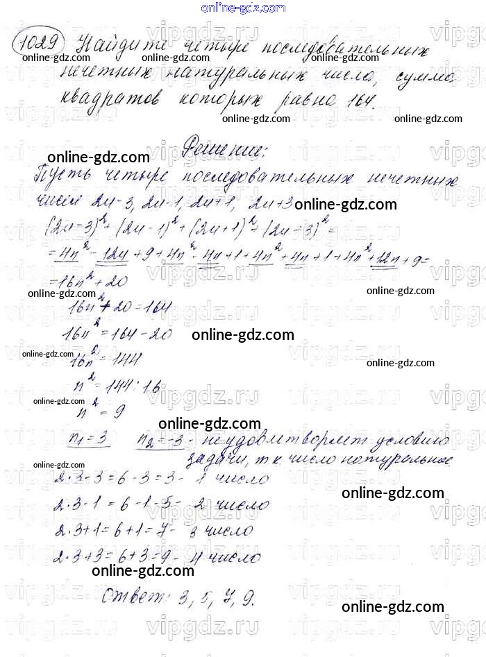Готовые домашние задания по Алгебре за 7 класс Учебник Мерзляк, Полонский Алгоритм успеха Базовый уровень 2016 - Упражнения 1029