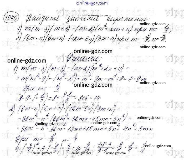 Готовые домашние задания по Алгебре за 7 класс Учебник Мерзляк, Полонский Алгоритм успеха Базовый уровень 2016 - Упражнения 1040