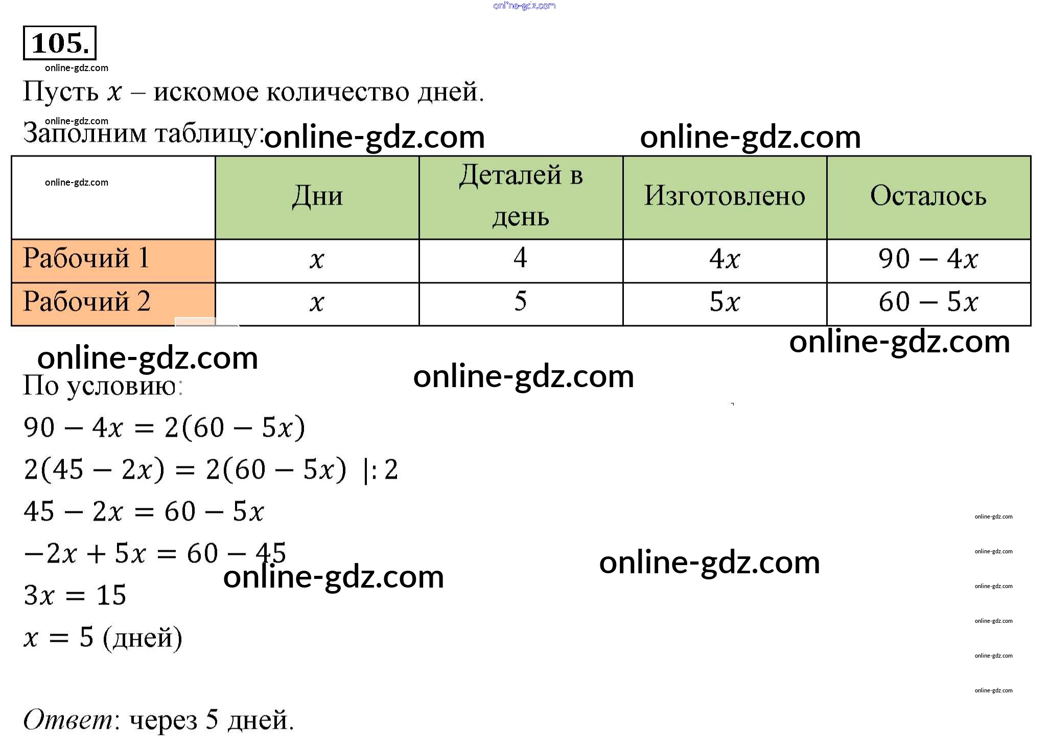 Готовые домашние задания по Алгебре за 7 класс Учебник Мерзляк, Полонский Алгоритм успеха Базовый уровень 2016 - Упражнения 105