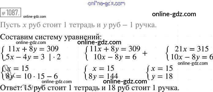 Готовые домашние задания по Алгебре за 7 класс Учебник Мерзляк, Полонский Алгоритм успеха Базовый уровень 2016 - Упражнения 1087