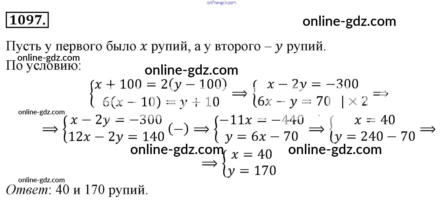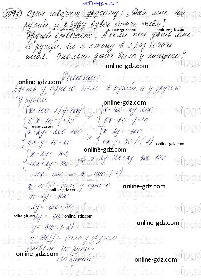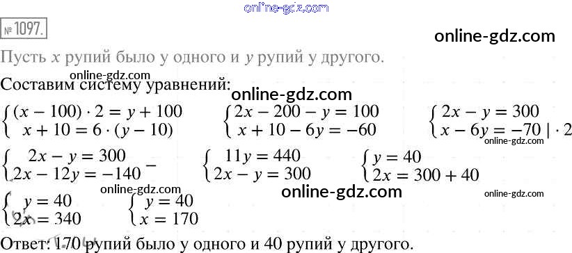 Готовые домашние задания по Алгебре за 7 класс Учебник Мерзляк, Полонский Алгоритм успеха Базовый уровень 2016 - Упражнения 1097