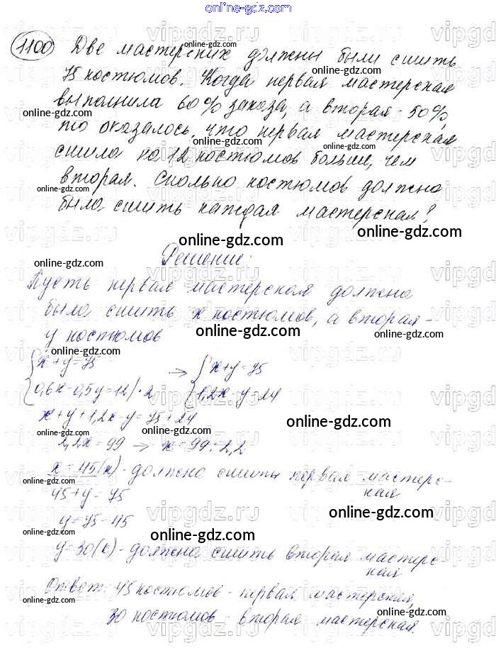 Готовые домашние задания по Алгебре за 7 класс Учебник Мерзляк, Полонский Алгоритм успеха Базовый уровень 2016 - Упражнения 1100