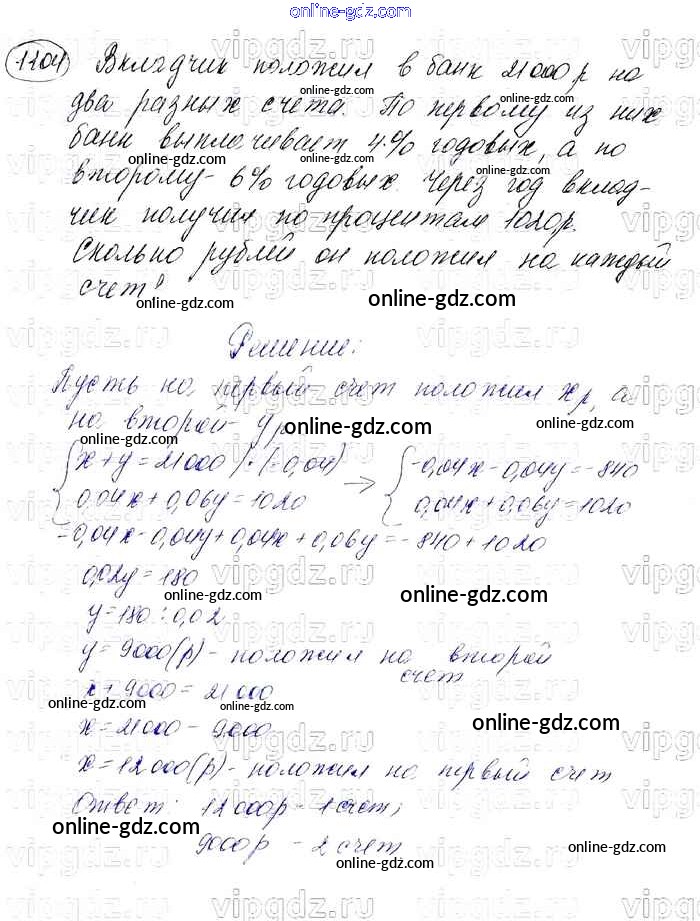 Готовые домашние задания по Алгебре за 7 класс Учебник Мерзляк, Полонский Алгоритм успеха Базовый уровень 2016 - Упражнения 1104